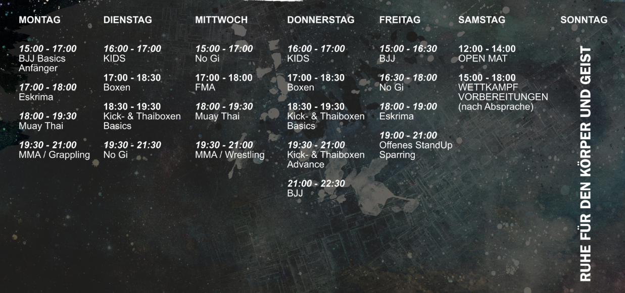 Unser Angebot lässt für jeden eine individuelle Auswahl zu. Schau Dich gerne bei uns um und entdecke den Kämpfer in Dir!